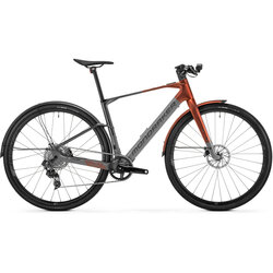 A sleek Alpha Platinum Aluminum frame with a carbon fork. TQ's quiet and compact HPR50 motor (50nm/250W) capable of speeds up to 28mph, with a 360Wh battery and built-in LED display. Clean shifts from a 10-speed Shimano CUES U6000 drivetrain, powerful hydraulic disc brakes, and 700c wheels with grippy 40mm tires. Plus, all the odds and ends you need for the commute, like built-in front and rear lights, a kickstand and a MIK-compatible rear rack.
